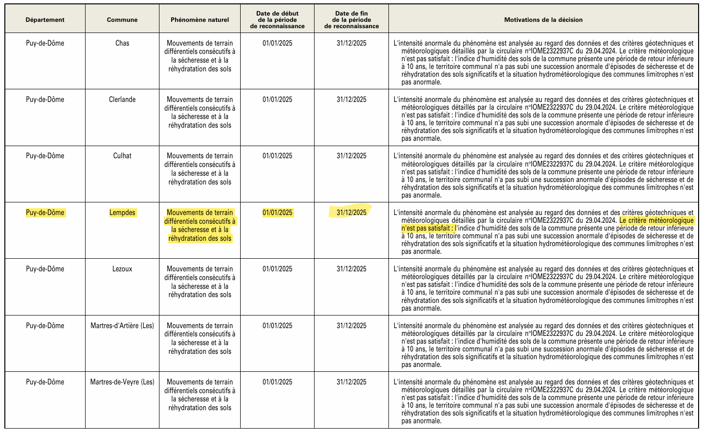 L’arrêté de reconnaissance de catastrophe naturelle a été publié au